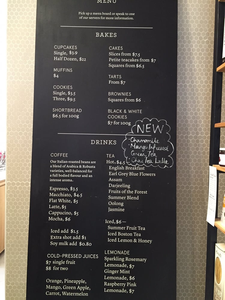 The menu features a mesmerizing selection of treats, from their moist Marble Loaf Cake to the crowd-favorite Strawberry White Chocolate cupcake. Each cupcake, priced from $3.50, boasts a unique flavor profile, including the celebrated Earl Grey variety. Additionally, refreshing beverages like Agave Lemonade and Iced Shaken Teas complement the sweet offerings, providing a delightful contrast.